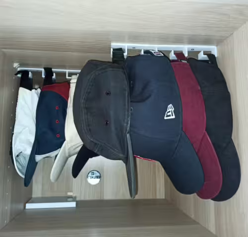 La sujeción es firme y estable, manteniendo los gorros organizados sin deformarlos ni dañarlos. Además de aportar orden, su diseño simple y limpio se integra fácilmente a distintos estilos de ambiente, ofreciendo una solución duradera para el uso diario.