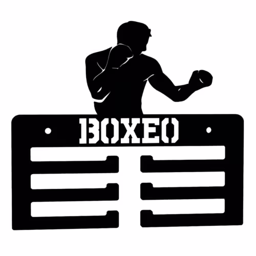 Este medallero de boxeo es ideal para organizar y exhibir tus medallas deportivas con orgullo y determinación. Diseñado especialmente para boxeadores y boxeadoras, permite colgar múltiples medallas de forma ordenada y visible, destacando cada logro obtenido en combates, torneos y campeonatos.