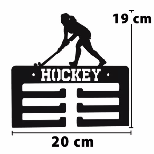 Este medallero de hockey femenino es la forma ideal de exhibir tus medallas deportivas con estilo y orden. Diseñado especialmente para jugadoras y entusiastas del hockey, permite colgar tus medallas de forma accesible y visible, manteniendo tus logros organizados en un solo lugar.