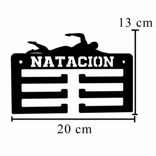 Este medallero para natación de 20 cm de ancho permite exhibir tus medallas de forma organizada, segura y con estilo. Diseñado especialmente para nadadores, ofrece un espacio ideal para colgar múltiples medallas, manteniéndolas visibles y accesibles para celebrar tus logros deportivos.