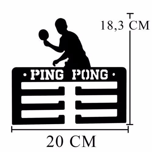 Este medallero de ping pong es perfecto para organizar y exhibir tus medallas de tenis de mesa con orgullo. Diseñado especialmente para jugadores y jugadoras de este deporte, permite colgar múltiples medallas de forma ordenada y visible, manteniendo cada logro siempre presente como motivación.