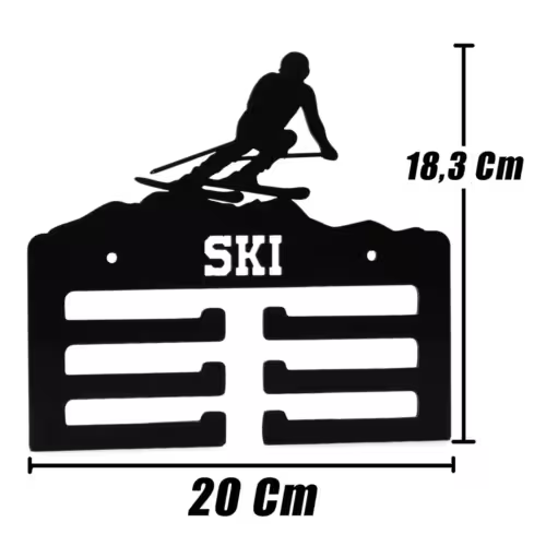 Este medallero de ski es ideal para organizar y exhibir tus medallas deportivas con orgullo y pasión por la montaña. Diseñado especialmente para esquiadores y esquiadoras, permite colgar múltiples medallas de forma ordenada y visible, destacando cada logro obtenido en competencias, campeonatos y eventos de invierno.