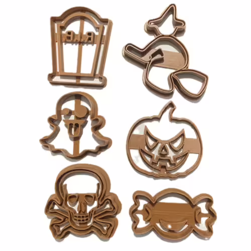 Set de 6 cortadores de galletas de Halloween de 8 cm y 1 cm de profundidad de corte. Resistentes, reutilizables y perfectos para tus preparaciones festivas.