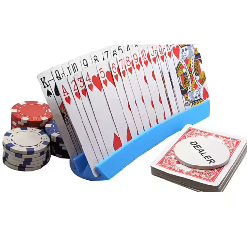 Este soporte para cartas ofrece una forma práctica, cómoda y elegante de organizar tus manos durante partidas de póker, blackjack u otros juegos de naipes. Su diseño estable mantiene las cartas firmemente alineadas, permitiéndote visualizar tu mano sin esfuerzo y evitando la fatiga en las manos durante sesiones prolongadas.